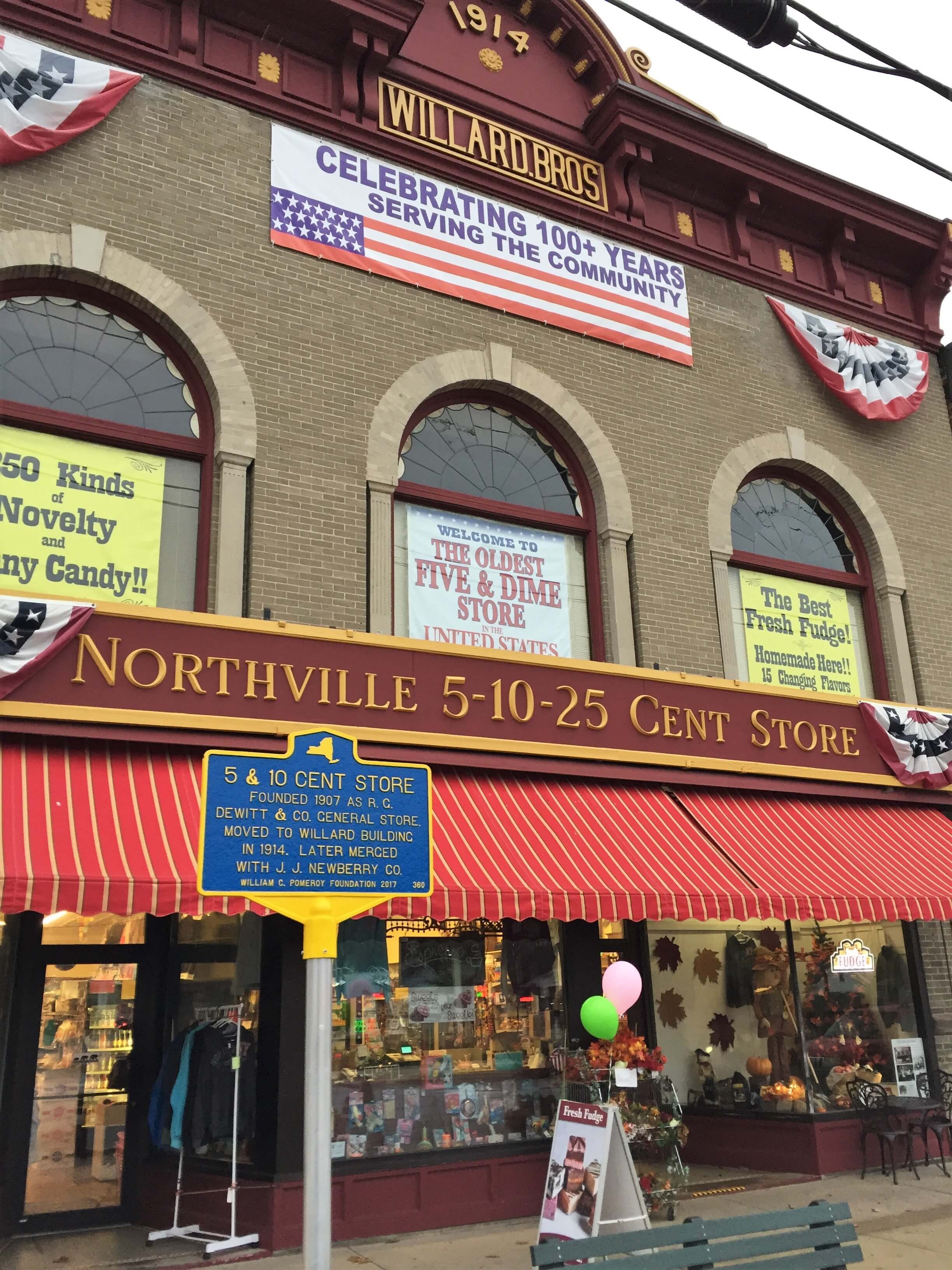With a bright red and white striped awning and a large red and yellow trimmed sign, the Northville 5 – 10 – 25 Cent storefront is hard to miss. Located on Main Street in the Town of Northville, it is home to what is believed to be one of the oldest five and dime stores in the United States (northville5and10.com, 2019).