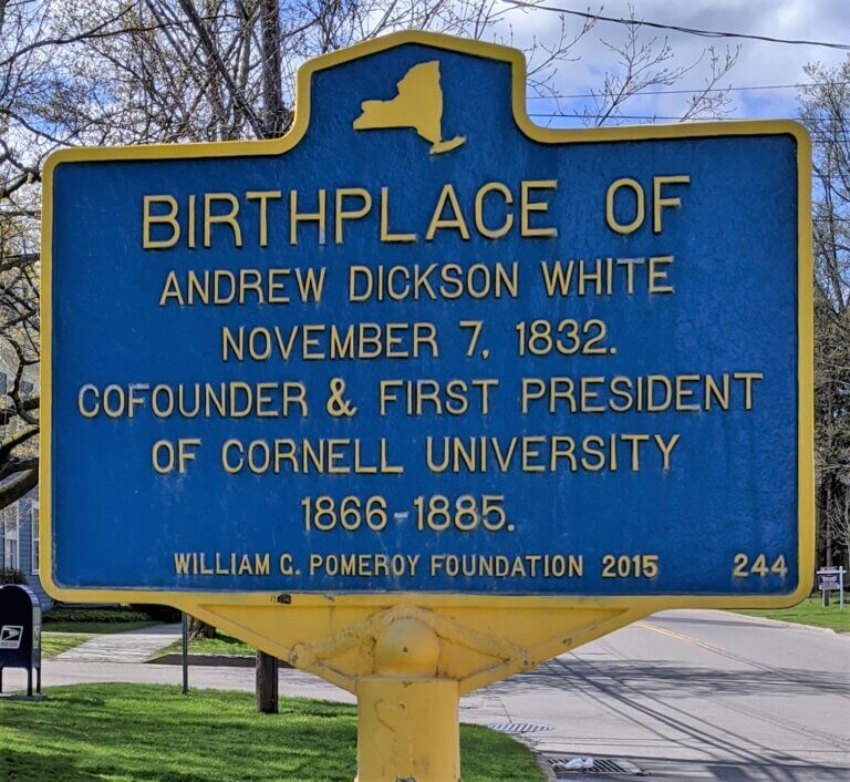 The birthplace of Andrew Dickson White, cofounder and the first president of Cornell University, is located on the corner of South Main Street and Albany Street in the Village of Homer. Today, the house still stands and looks much like it did in the 1800s.
