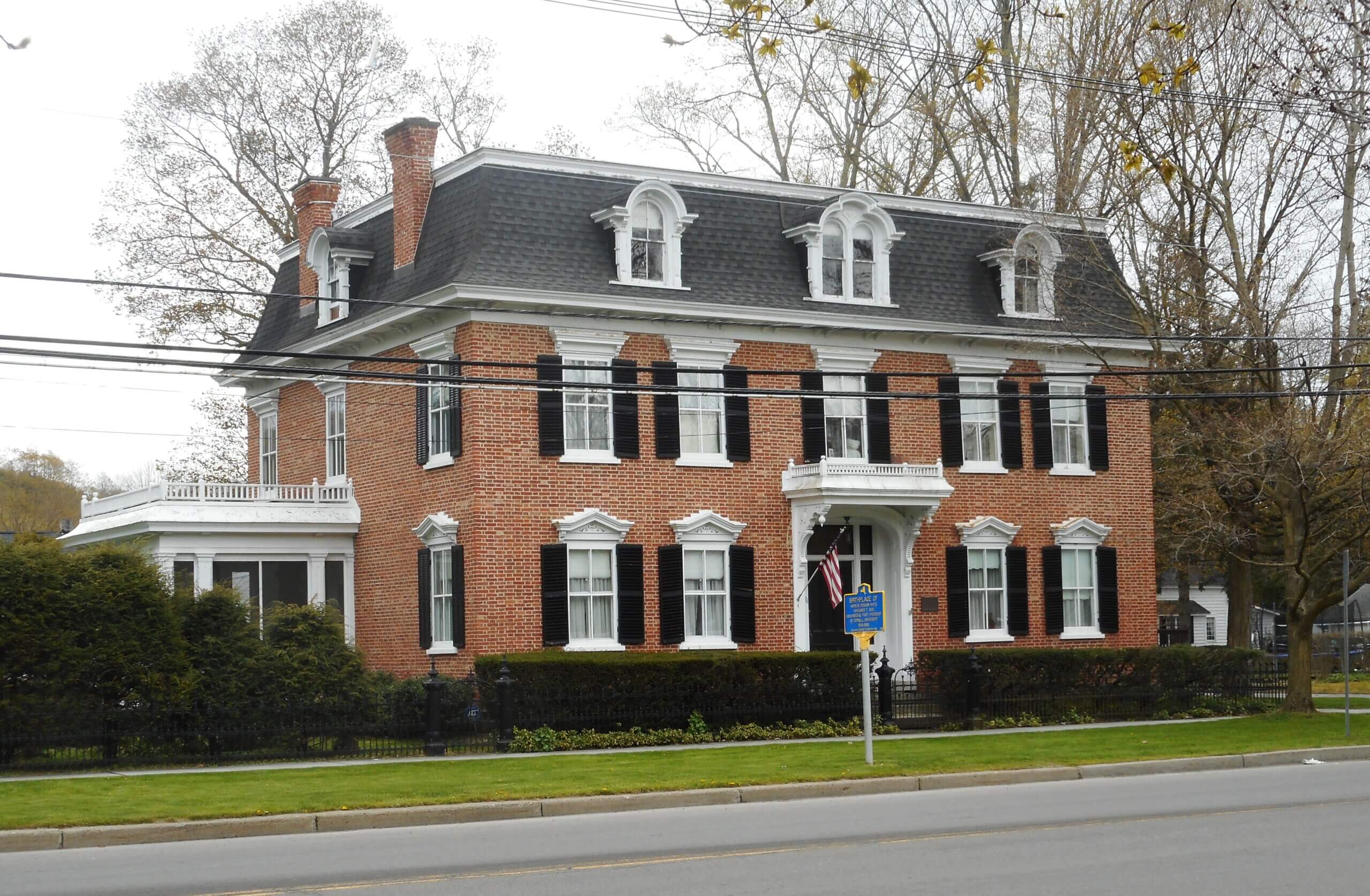 White’s former home is three stories, built primarily of brick and features an Italianate sloping roof. The front of the house has ten windows that are decorated with black shudders, complementing the darker roof. According to White’s November 7, 1918 obituary, he was born at home on November 7, 1832 to Horace White and Clara Dickson. In his 1905 autobiography, he recalls his childhood home as, “a big, comfortable house of brick, in what is now called ‘colonial style,’ with a ‘stoop,’ long and broad, on its southern side, which in summer was shaded with honeysuckles. Spreading out southward from this was a spacious garden filled with old-fashioned flowers.” White lived here until the age of seven, when he moved to Syracuse with his parents.