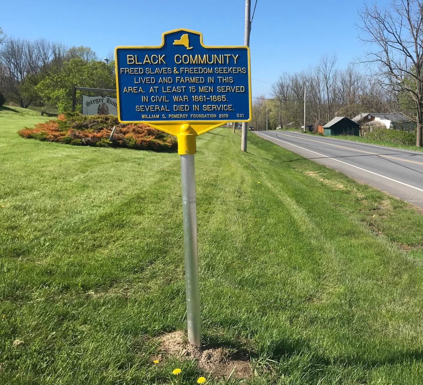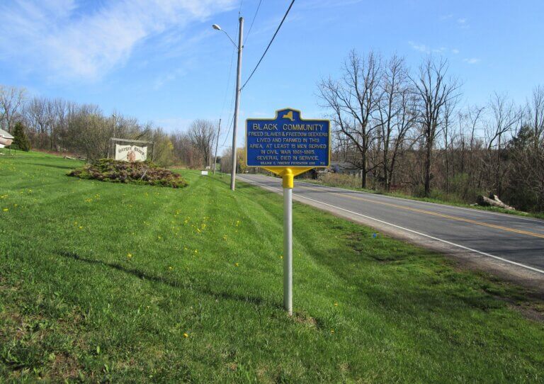 The initial settlement most likely began shortly after 1813 by people formerly enslaved by Peregrine Fitzhugh, who had died in 1811. Abraham and Pen Bradington, along with their four children, were listed in the Valuation of Property when the Fitzhugh estate was settled. However, by 1818, Abraham Bradington was paying taxes on property in this area, completing the purchase of his first ten acres in 1819 and another ten in 1831. Names of other property owners are also found in the estate inventory. A vibrant African-American community soon grew across 60 acres in this hamlet just west of Sodus Point. It was never given an official name, and many residents referred to it as the “colored settlement.” At least 15 men who lived in the Settlement served in the Civil War, several losing their lives. It is now known as the Maxwell Settlement, taking its name from the local mill owner’s wife’s family name of Maxwell.