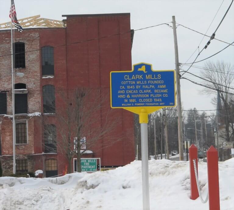 The hamlet of Clark Mills, part of modern-day Town of Kirkland, is named for the Clark Mills Company and its founders: Ralph, Ammi, and Erastus Clark. The family business was established around 1845 and flourished for several years. In 1891 the company name changed to the Hind & Harrison Plush Co. and remained in operation until its closure in 1949.