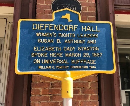 Diefendorf Hall stands among a row of buildings along Main Street in the Village of Fort Plain. The building is historically significant for hosting Women’s Rights Movement leaders Susan B. Anthony and Elizabeth Cady Stanton in 1867. Stanton addressed the assembled audience on “Universal Suffrage.”