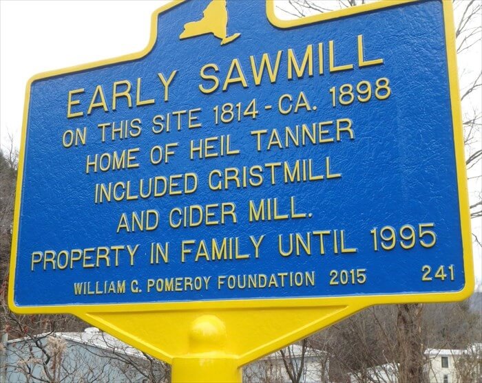 The Town of Taylor was originally part of the Town of Solon until 1849. According to the 1869 Gazetteer and Business Directory of Cortland County, NY, Ezra Rockwell and his two sons, Ezra Jr. and Thomas were among some of the early residents of Solon, arriving in the 1790s. In 1814 Thomas and his brother bought parts of lots 99 and 100 in Taylor (Deed, Cortland County, NY Clerk’s Office, 1 Sep 1821). As stated in H.P. Smith’s 1885 book, History of Cortland County, Thomas built one of the first sawmills located in Solon (now Taylor). According to an 1876 map of Taylor, the mill was situated along Pond Creek in the center of town. This location allowed for ample production and business and enhanced the overall success of the mill.