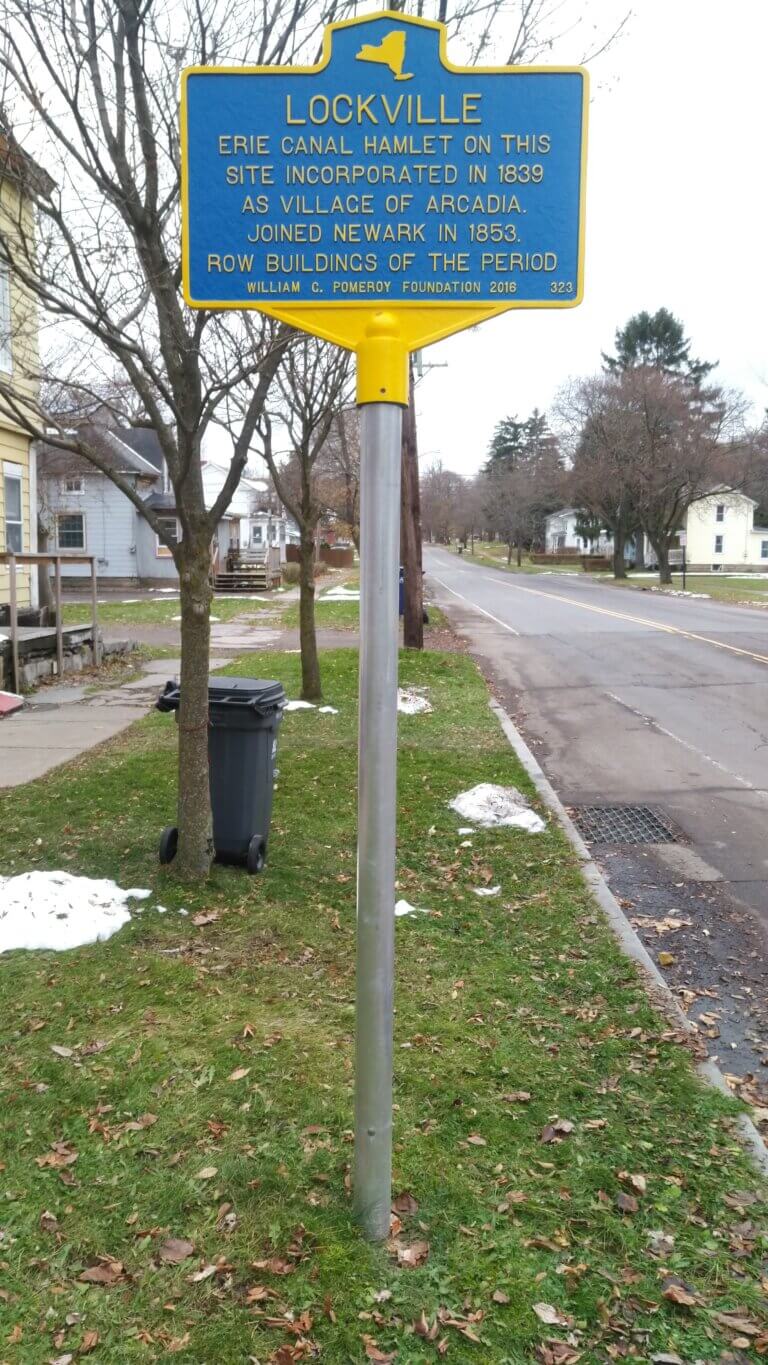 The small hamlet of Lockville was located three-quarters of a mile east of Newark. It was called Lockville due to the three locks built near the settlement on the original Erie Canal. In 1839, the settlement of Lockville became incorporated as the Village of Arcadia. Newark and Lockville both prospered as a result of the Erie Canal, and in 1853 the of Newark was created, incorporating the village of Arcadia. The row buildings on this section of Vienna Street are thought to be the oldest remaining buildings in the Lockville area of Newark.