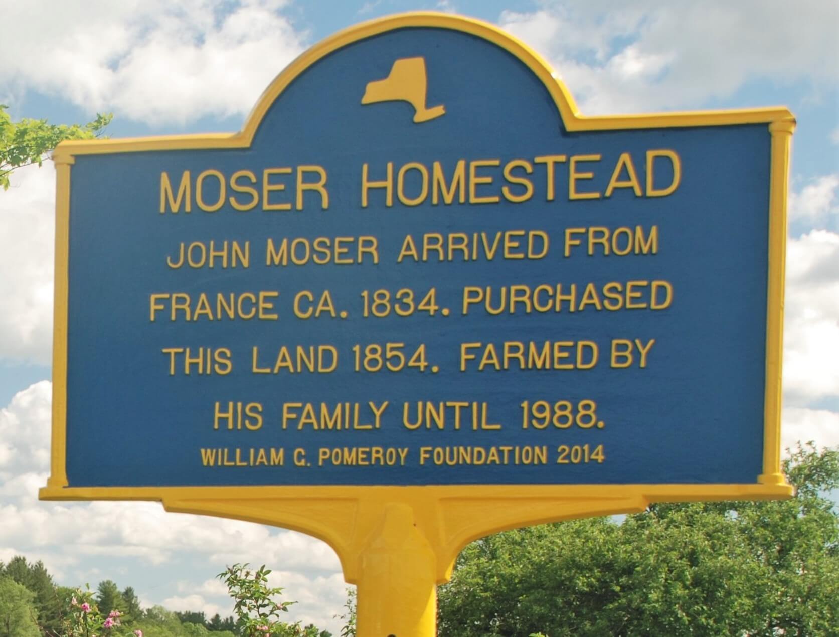 As of 2019, the Moser homestead was known as the Adirondack Mennonite Heritage Farm and included a two story home, two English style barns, a granary and a garage. In 2010, the farm was added to the list of National Register of Historic Places.