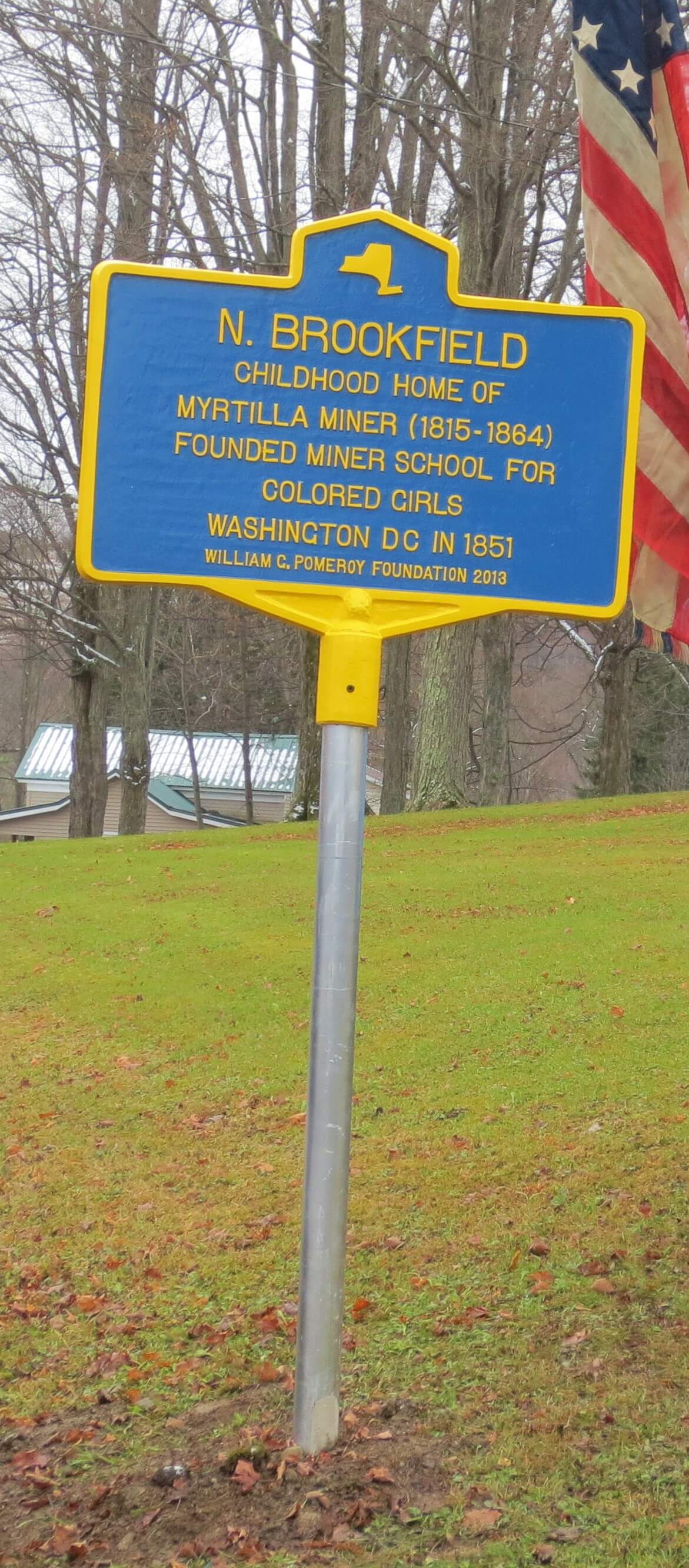 North Brookfield, New York is home to the site of the childhood home of Myrtilla Miner, an educator and pioneer in teacher education for African American women in Washington, D.C.