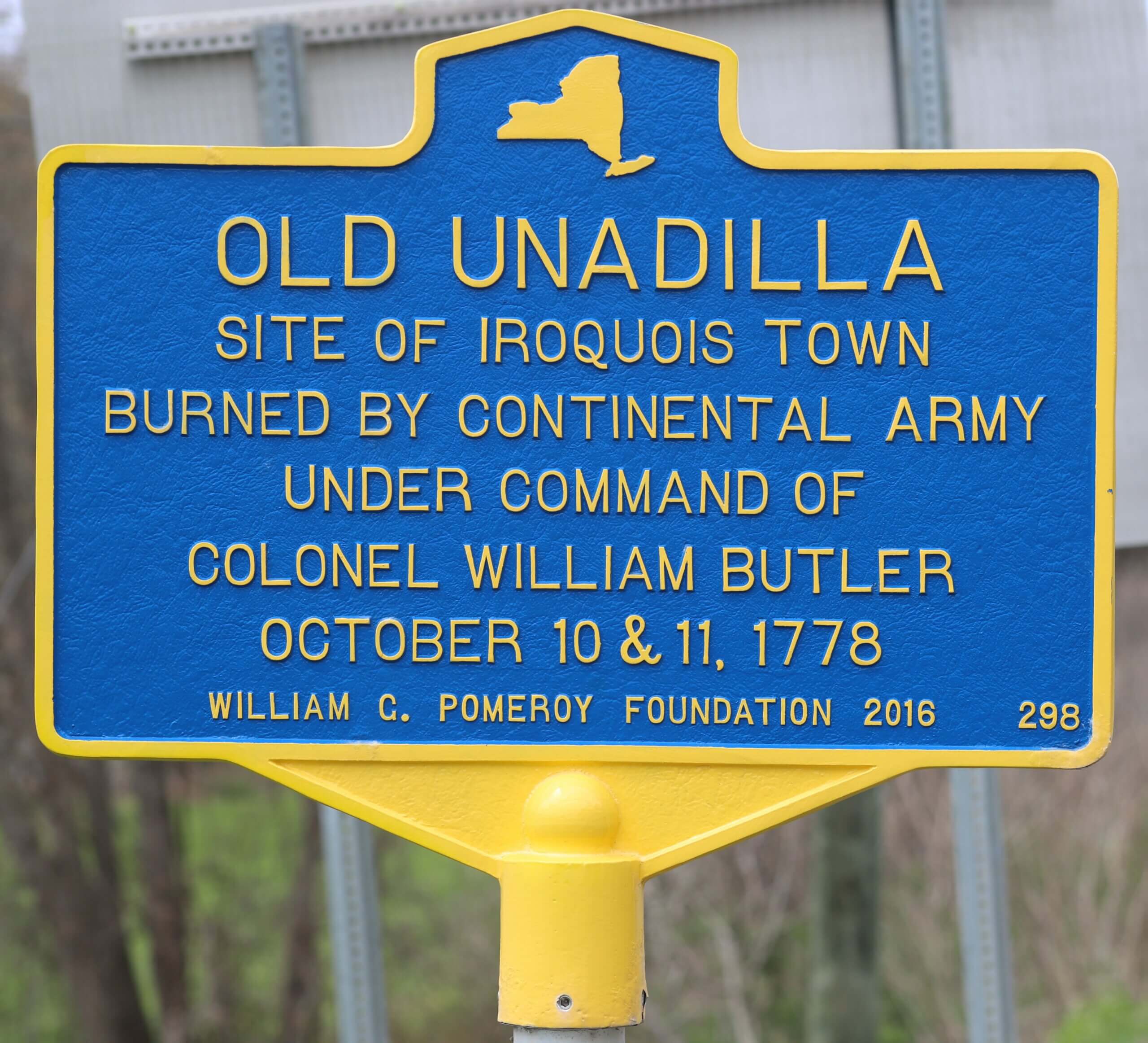 The Town of Sidney, New York is bordered on the north side by the Susquehanna River and New York Highway 7. Over 200 years ago, this site was once the location of an Iroquois (Haudenosaunee) town known as Unadilla. It was burned by the Continental Army under the command of Colonel William Butler, during what is known as the Sullivan-Clinton Campaign.