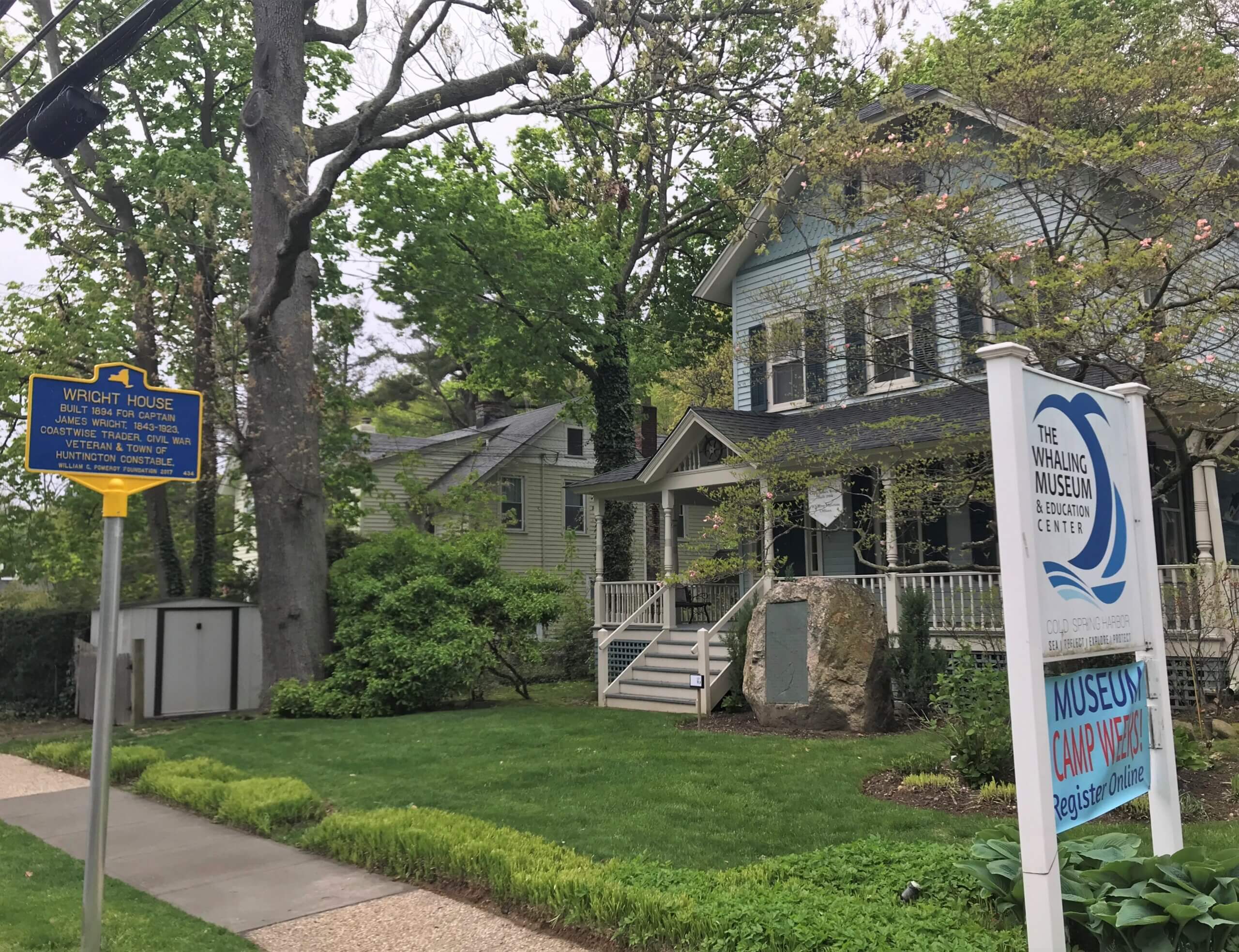This house, built in 1894, was the home of Captain James Wright. Captain Wright was a coastwise trader, Civil War veteran, and constable for the Town of Huntington, New York. Captain Wright served in the Navy during the Civil War and went on to become a successful captain on many ships, including the Excelsior which sailed out of Cold Spring Harbor. The exterior architectural detail of his home has remained intact, from the stained glass windows down to the captain’s wheel adorning the porch gable.
